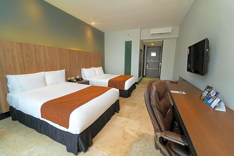 An air-conditioned room with a flat-screen cable TV, WiFi access and 24-hour room service. It also includes 2 queen-size beds.